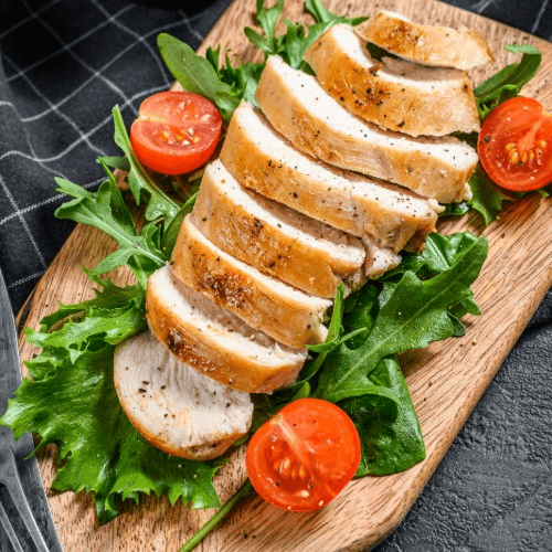 Tender charbroiled chicken paired with crisp lettuce, sweet corn, sliced avocado, a blend of jack and cheddar cheese, and ranch dressing on the side.
