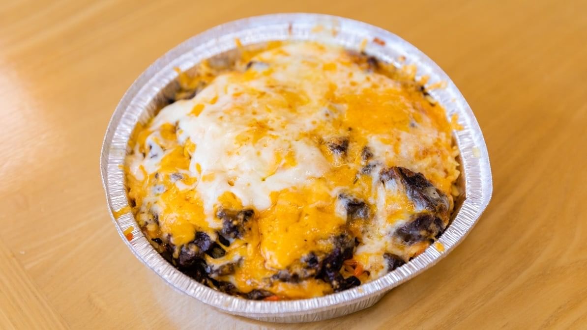 Your choice of meat paired with rice and a melted cheese blend on top.