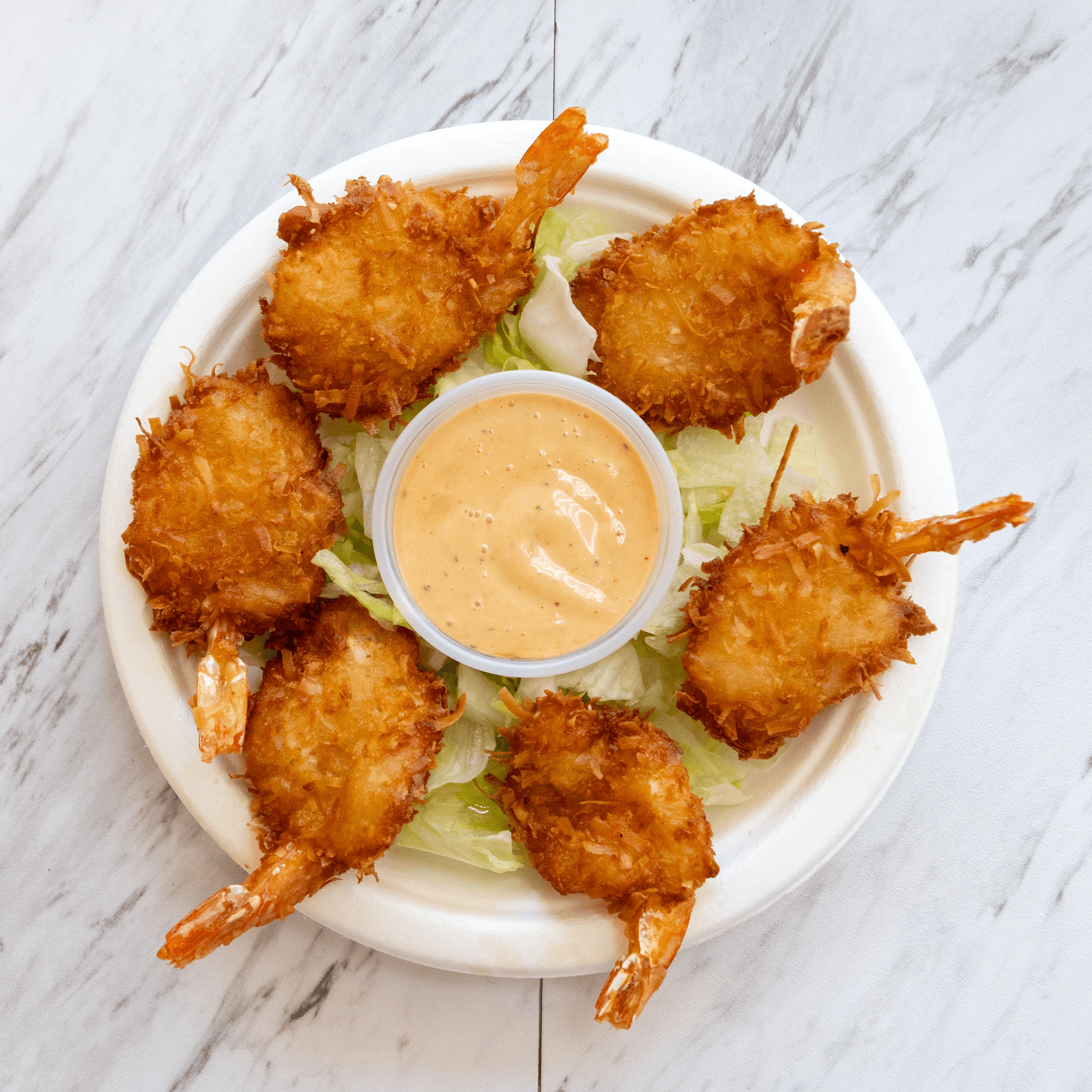Golden coconut shrimp paired with creamy chipotle mayonnaise.